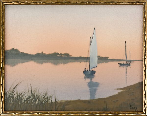 Thelma Frazier was a graduate from the influential Cleveland Institute of Art in 1929, and as a student there and shortly after she graduated, she worked as a designer for the Cowan Pottery, where she would have encountered a number of other significant Cleveland-based ceramists, notably Waylande Gregory, Viktor Schreckengost, Edris Eckhardt, and Edward Winter (whom she married in 1939). The Cowan Pottery fully embraced the modern style in the ceramics they produced. This plaque of three nude women feeding birds exemplifies the high French art deco style that Cowan advocated. The design derives from a much –publicized painting by Jean Dupas from the time of the 1925 Exposition in Paris. While Frazier did not capture the sensuosity of the French painting, she nevertheless brought to the design an energetic, modernist design, with its stylized figures and angular lines.