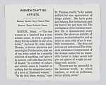 - Title: Women Can’t Be Artists (special to the NY Times, February 27, 1910)