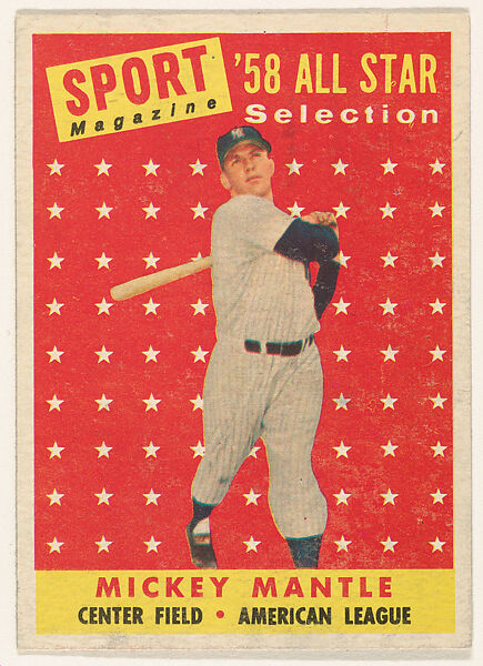 - Title: Mickey Mantle, Center Field, American League, from the "1958 Topps Regular Issue" series (R414-13), issued by Topps Chewing Gum Company