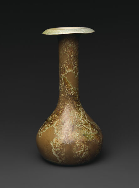 The pottery established at University City, outside of Saint Louis, Missouri, was the brainchild of visionary Edward Gardner Lewis. He sought to experiment with a new approach to women’s education, which included publishing a journal and offering mail-order classes. To launch his pottery enterprise, Lewis lured Taxile Doat, the eminent French ceramist from Sèvres; Adelaide Alsop Robineau, master porcelain artist from Syracuse, New York, and her husband, Samuel; and English –born potter Frederick Hurten Rhead to University City. Having discovered a vein of kaolin clay (the key ingredient for porcelain) during the excavation for Lewis’s publishing headquarters, he decided that the pottery would exclusively focus on porcelain. The intimate environment of these superbly talented potters fostered close collaboration among the artists there. Doat introduced the high-fired crystalline glazes that had been perfected at Sèvres, and although many of the shapes were rather simple and restrained, as seen on this example, they often featured among the most sophisticated and shimmering crystalline glazes known in the United States.
