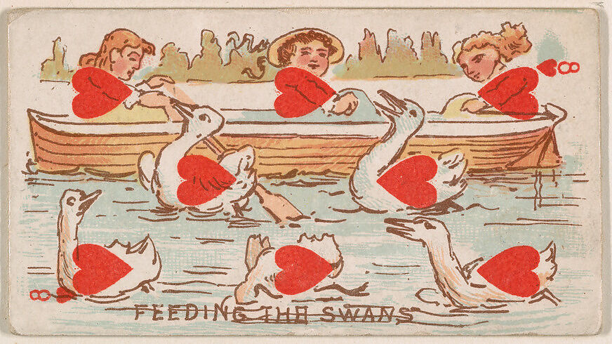- Title:Eight of Hearts, Feeding the Swans, from Harlequin Cards, 2nd Series (N220) issued by Kinney Bros.