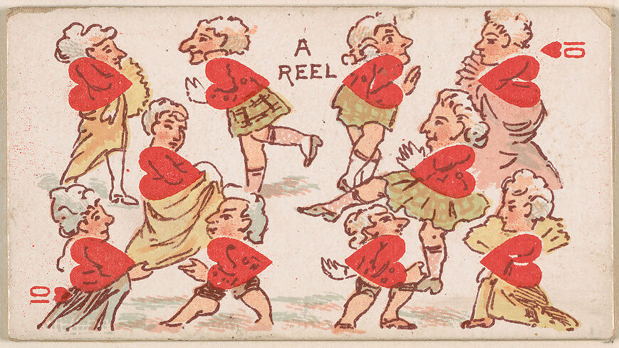 Ten of Hearts, A Reel, from Harlequin Cards, 2nd Series (N220) issued by Kinney Bros.