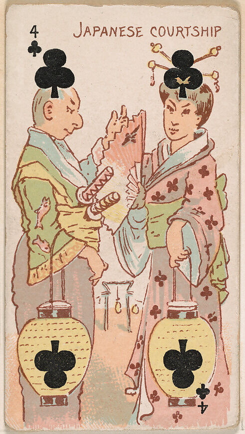 - Title:Four of Clubs, Japanese Courtship, from Harlequin Cards, 2nd Series (N220) issued by Kinney Bros.