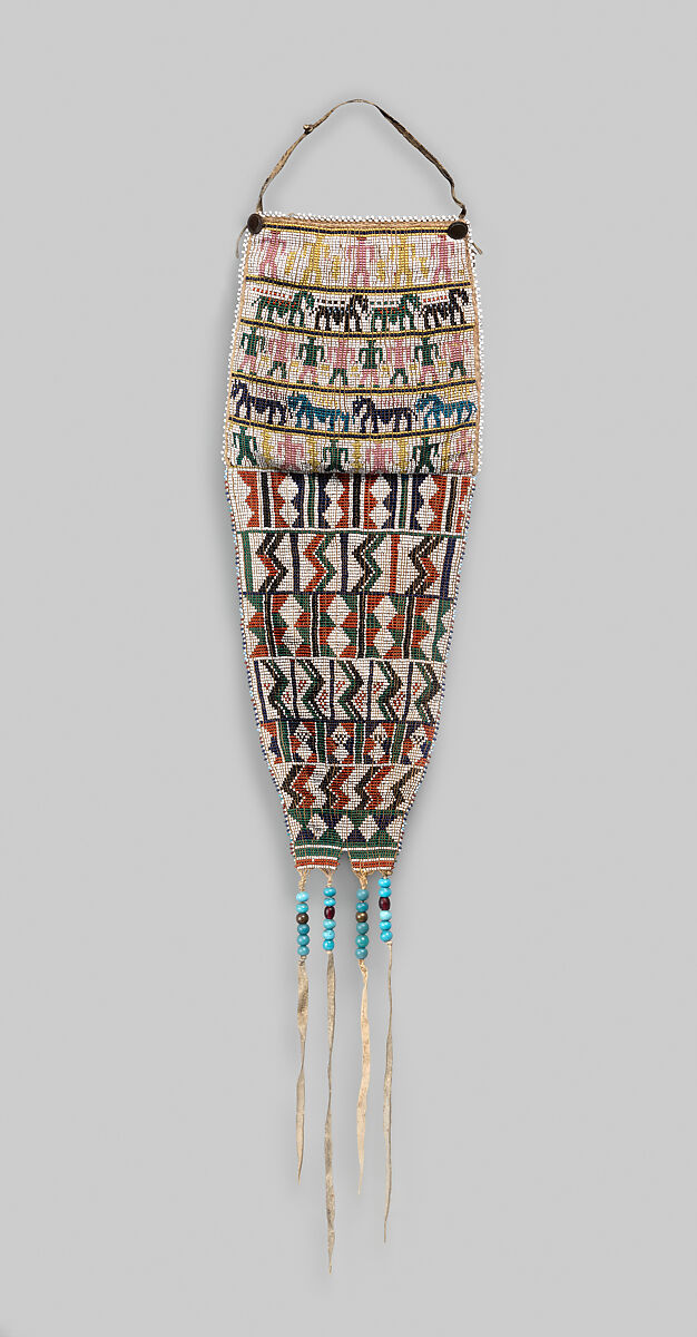 - Medium: Tanned leather, cordage, glass beads, brass beads, and commercial brass buttons