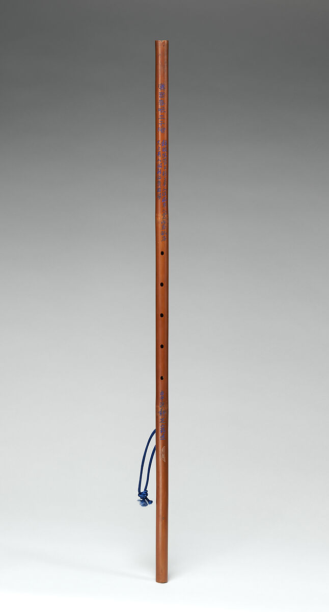 The Yuping xiao, an end-blown flute from Guizhou province (south-west China), provides a softer, more refined tone than more robust sounding versions used in ensembles. These qualities, associated with scholar’s instruments, make it suitable for solo playing or for duets with the qin (fretless long zither). Some xiao like this one have poems inscribed on them.