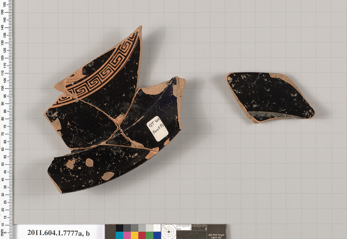 - Title: Terracotta rim fragments of a kylix (drinking cup)