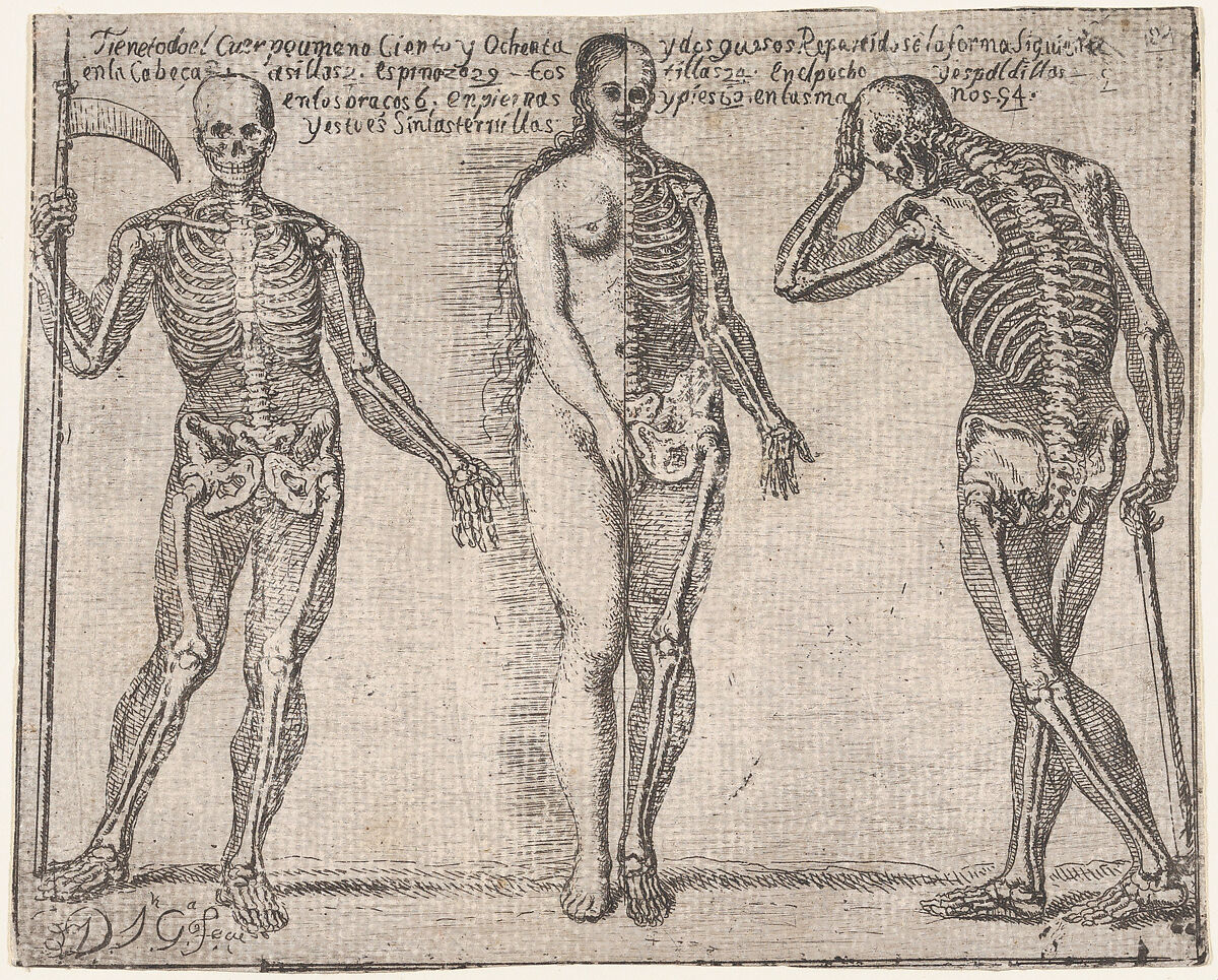 - Title: Studies of three skeleton, from the 'Principios para estudiar el Nobilísimo y Real arte de la Pintura' (Madrid 1693)