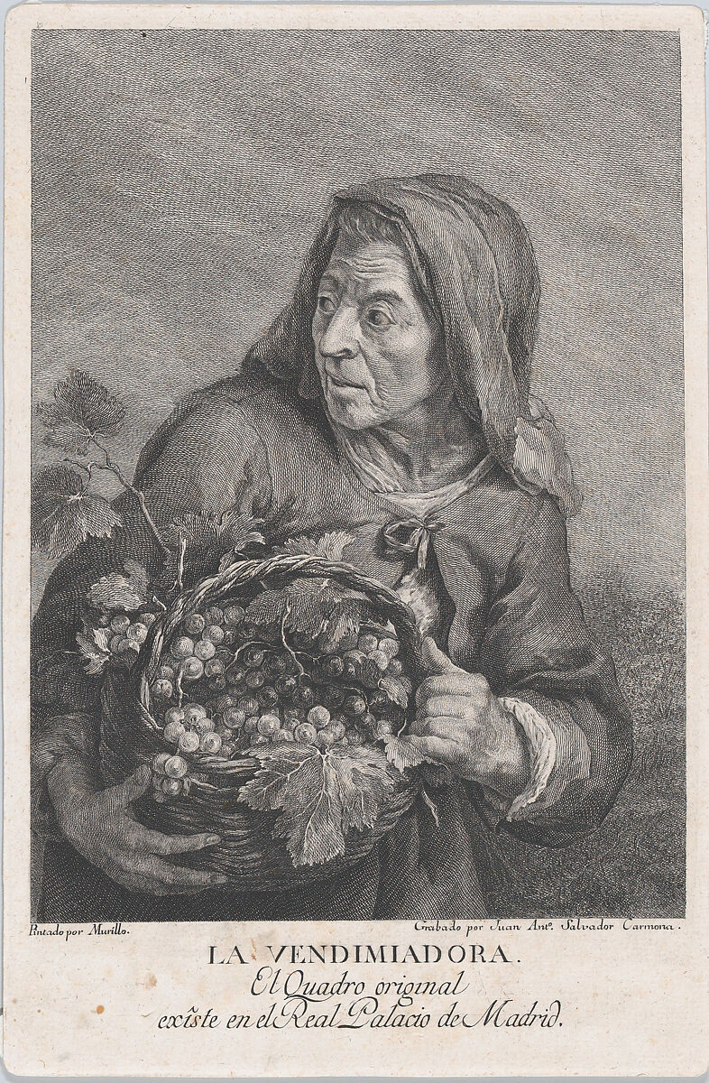 - Title: The grape-picker, and elderly woman holding a basket of grapes, after Murillo