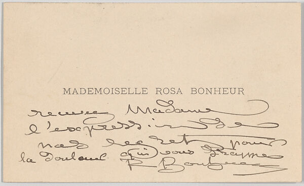 - Title: Mademoiselle Rosa Bonheur, calling card
