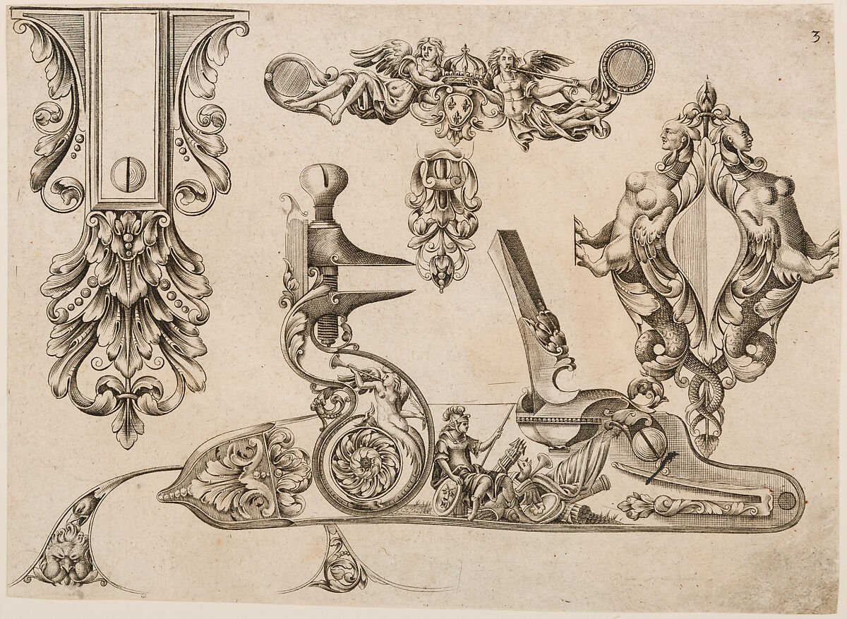 • Title: Plate Three from Plusieurs Models des plus nouuelles manieres qui sont en usage en l'Art de Arquebuzerie