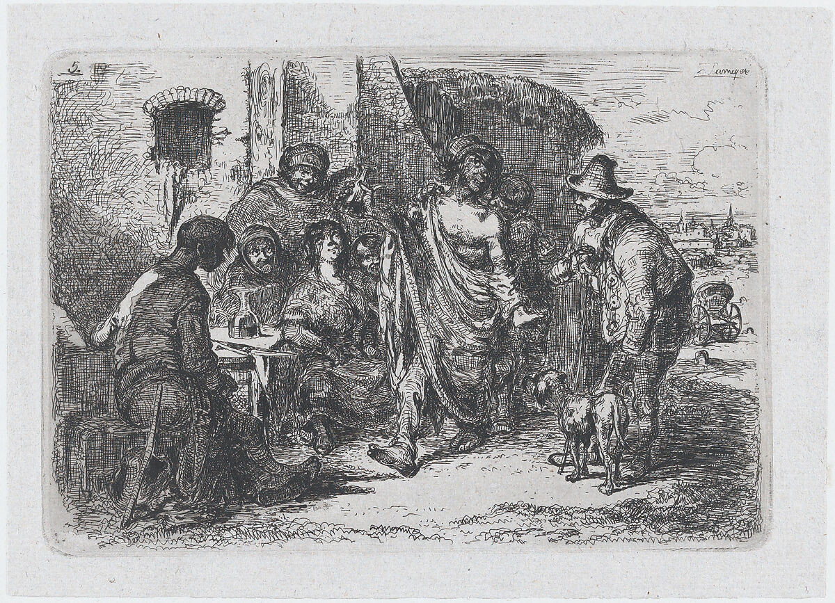 - Title: Plate 5: a drunk and dishevelled man dancing in the street surrounded by a group of onlookers, from "Customs and Pastimes of the Spanish People"