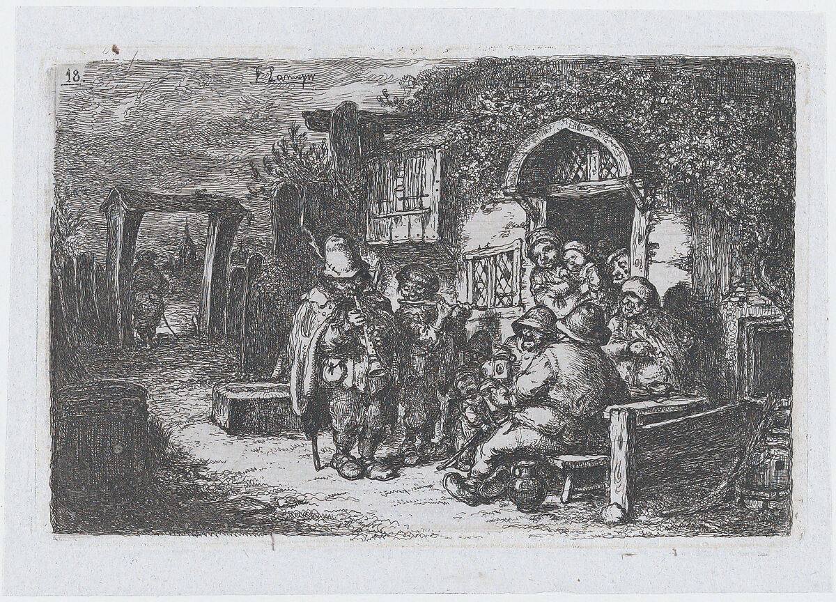 - Title: Plate 18: street musicians and other figures outisde a tavern, from "Customs and Pastimes of the Spanish People"