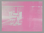 Warhol’s Electric Chair reiterates 10 times in 10 different, often lurid hues the same 1953 press photograph of the chamber at Sing Sing Correctional Facility in New York where Julius and Ethel Rosenberg would soon be executed. Warhol famously endorsed repetition as both an artistic strategy and a personal philosophy: "I like things to be exactly the same over and over again," he once said. Despite his cool, neutral delivery, Warhol’s use of repetition is charged with compulsive energy, especially when he replicates scenes of trauma, violence, and disaster, as he does here.