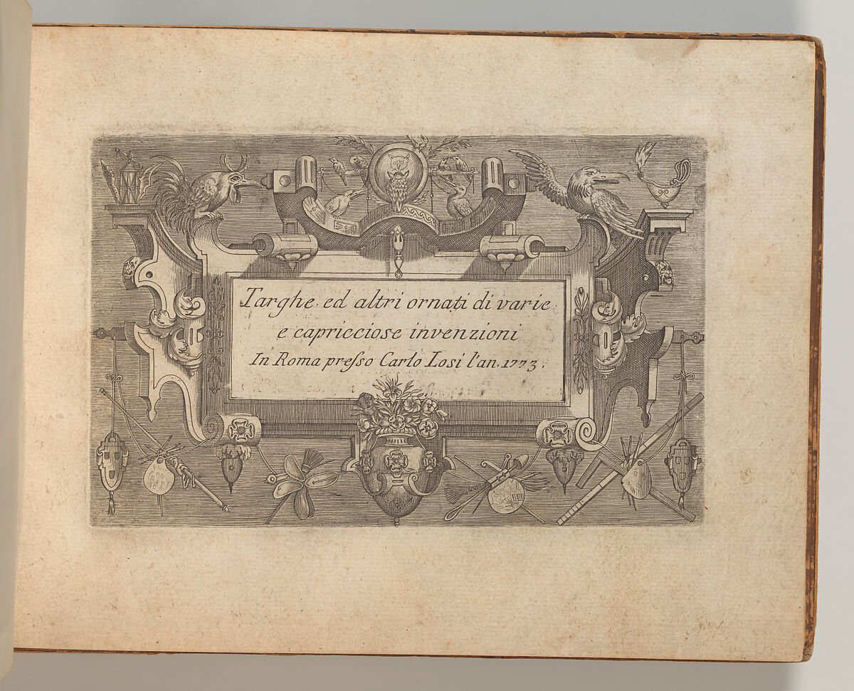 - Title: Targhe ed altri ornati di varie e capricciose invenzioni (Cartouches and other ornaments of various and capricious invention, page 1)