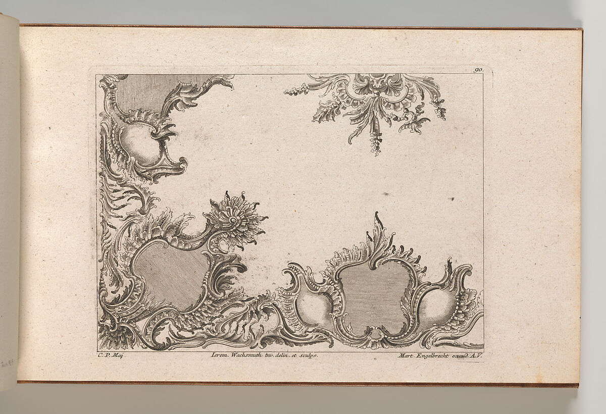 Page from an album containing 27 series with a total of 122 ornament prints from the fund of the prominent Augsburg publisher Martin Engelbrecht. The binding describes the content as cartouches (after the first series in the album) but it is much more varied, ranging from rocaille ornament and cartouches to designs for altars and pulpits, as well as allegorical compositions in which rococo ornament is featured, all by well-known Rococo designers working in Augsburg.
