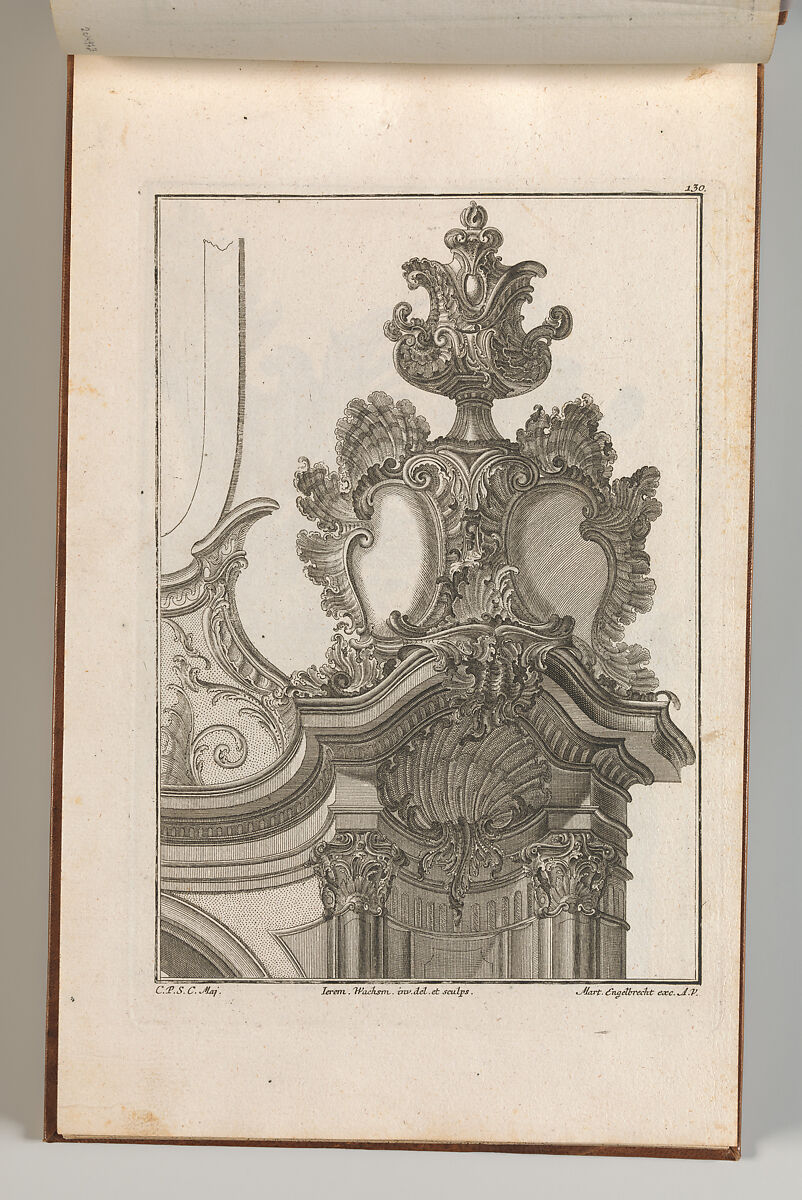 Page from an album containing 27 series with a total of 122 ornament prints from the fund of the prominent Augsburg publisher Martin Engelbrecht. The binding describes the content as cartouches (after the first series in the album) but it is much more varied, ranging from rocaille ornament and cartouches to designs for altars and pulpits, as well as allegorical compositions in which rococo ornament is featured, all by well-known Rococo designers working in Augsburg.