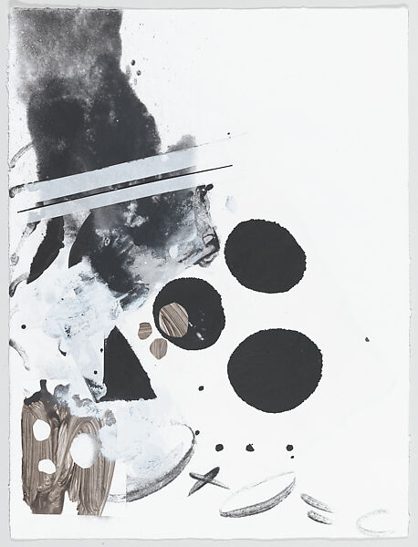 McClelland engages mathematical formulations as another form of language. 0 + 0 = 7, from the series Bad Math, makes reference to the 1967 painting Solutions V by the provocative postwar German artist Sigmar Polke. Both artists used incorrect equations in an absurdist manner. McClelland’s loose, gestural strokes recall writing on a blackboard or graffiti; her numbers deviate from the standardized numerical figures seen in everyday life and also employed by Polke and Jasper Johns in their art. Rendered in a palette of black, white, and gray, McClelland’s numbers and symbols float across the pictorial surface like thoughts made visible. Their flexibility and fluidity, and the manner in which they seem to appear and disappear into the composition, reflect ambiguities and contradict common notions about abstract analytical thought.