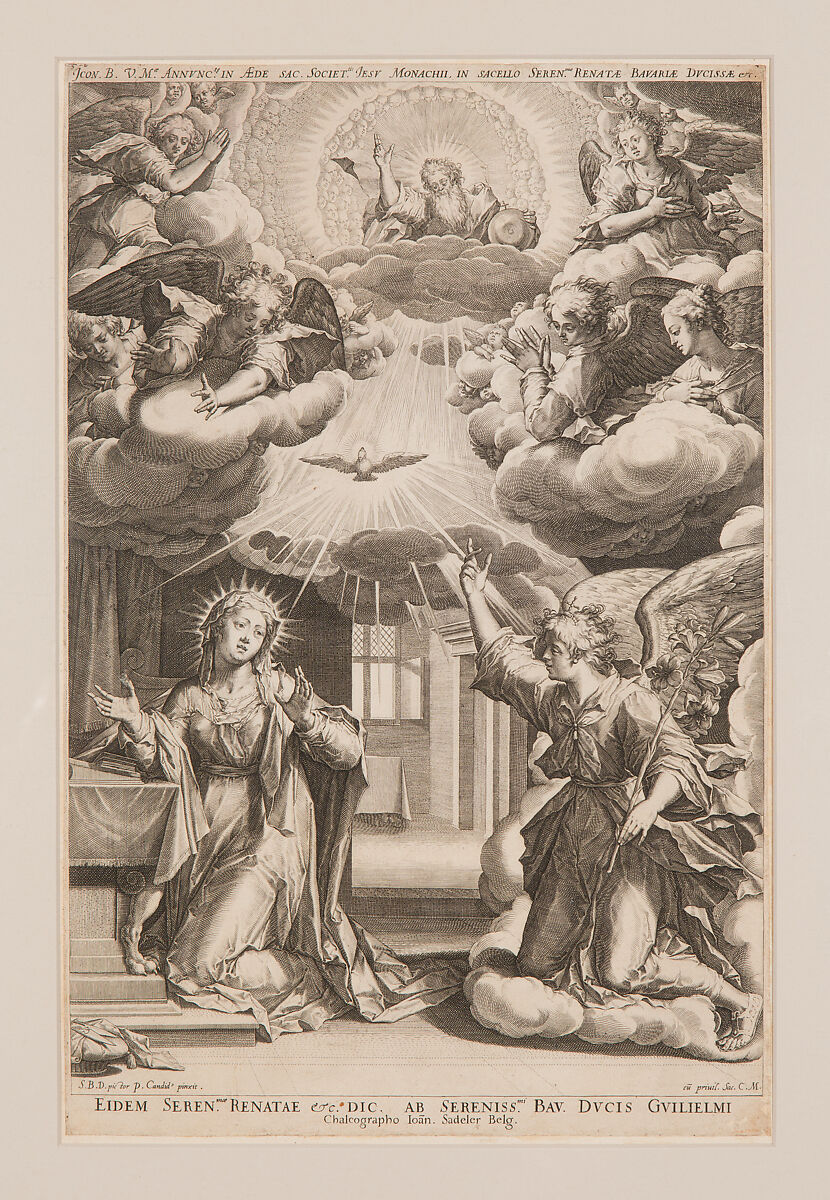 This accomplished engraving reproduces what is arguably the most important altarpiece painted by Candid for Munich’s Church of Saint Michael. At the center of the dramatic composition is Saint Ursula accompanied by virgins. While the print cannot convey the painter’s brushwork and use of color, the engraver captured the refinement and intricacy of Candid’s style.