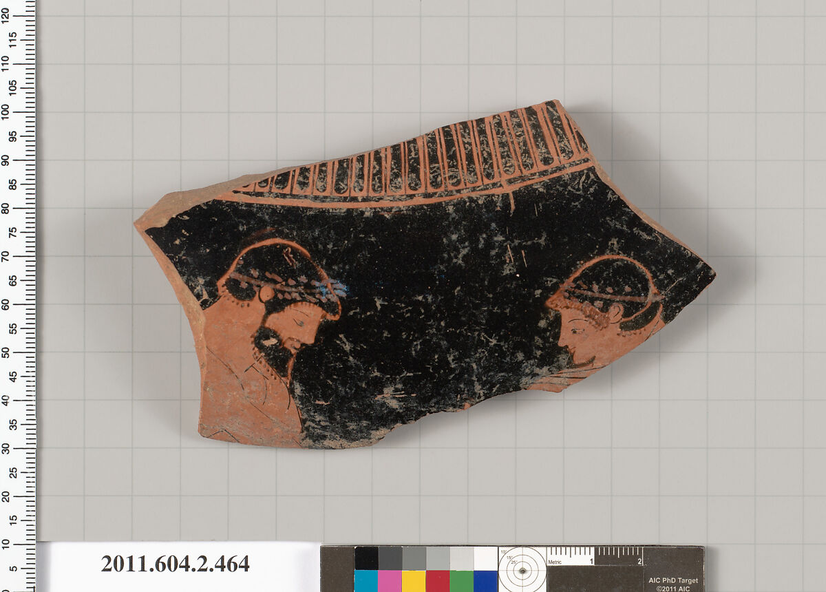- Title: Terracotta fragment of a column-krater (bowl for mixing wine and water)