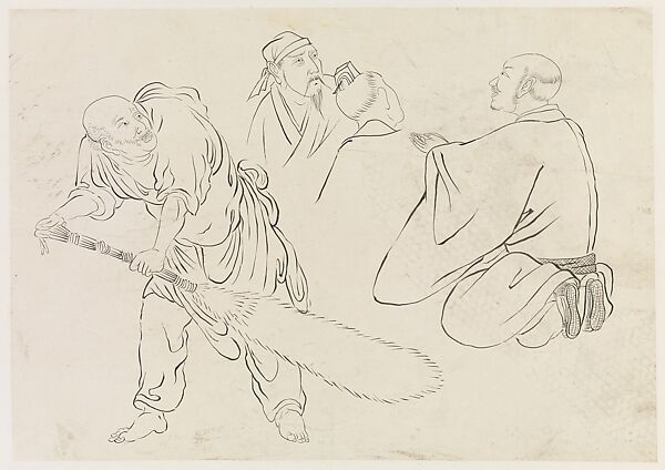 These three tracings (2005.411.47, .48, .49), made from a painting attributed to Liang Kai (ca. 1150?–ca. 1220?) that is now in the Shanghai Museum, show Xie's early interest in figure painting, particularly from Song dynasty prototypes.