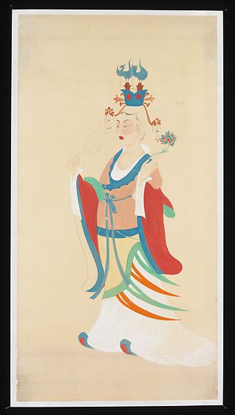 Xie brightened the colors used to describe this heavenly attendant, which he copied from an early Tang dynasty (618–907) mural in a cave temple at Dunhuang.