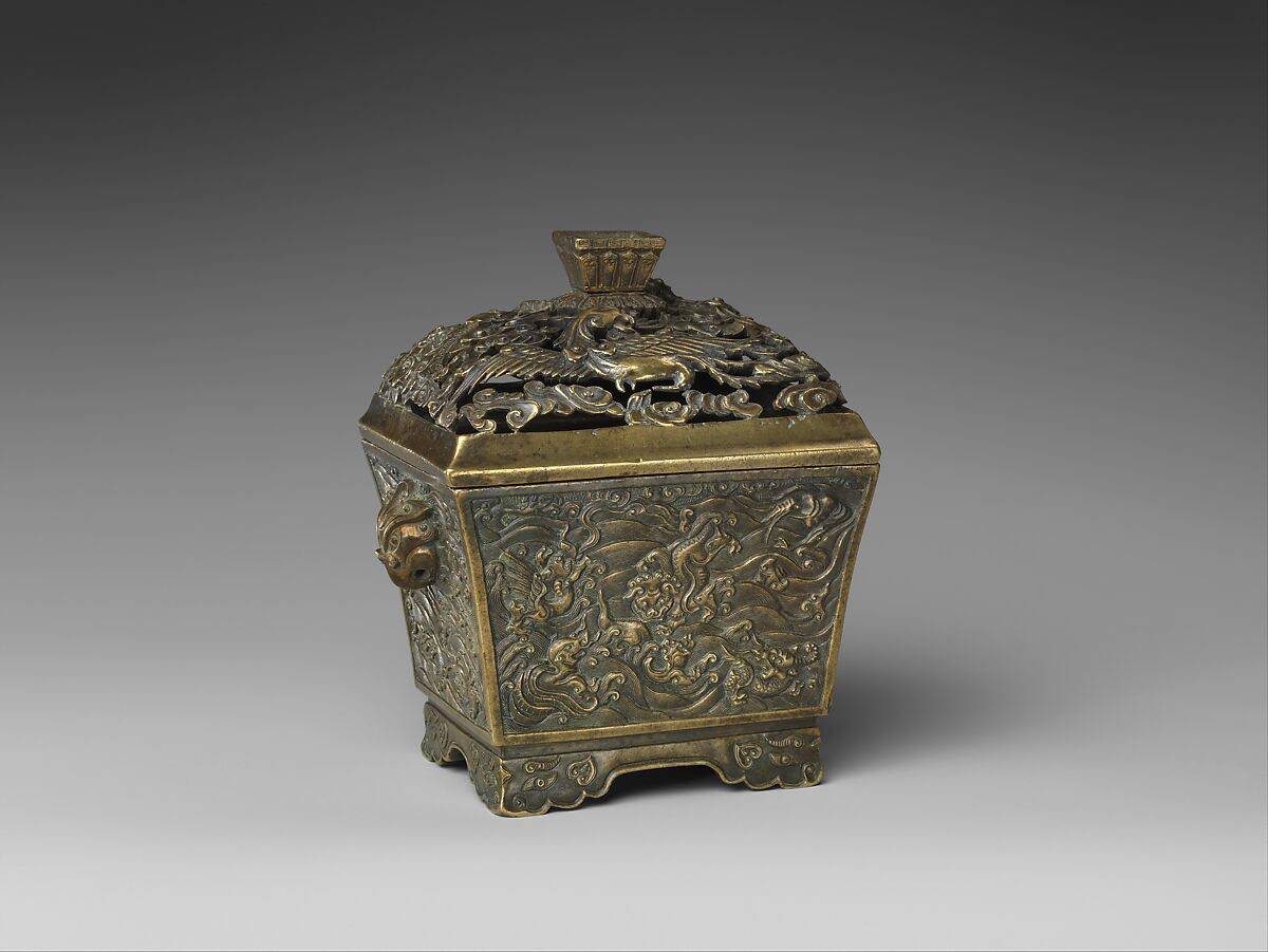 - Title: Incense burner with dragon, phoenix, and sea creatures