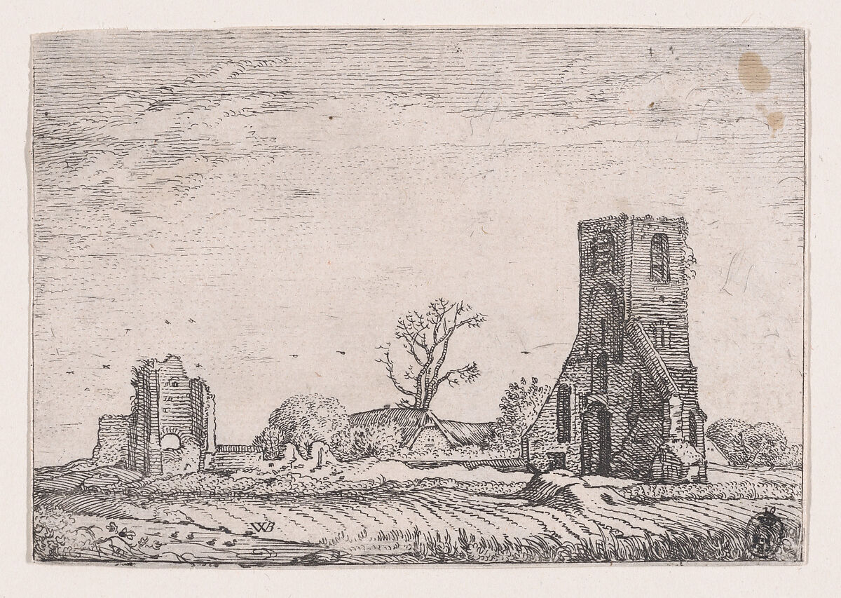 - Title: Ruins of the Chapel of Eykenduyen, near the Hague, from Verscheyden Landtschapjes (Various Little Landscapes), Plate 10