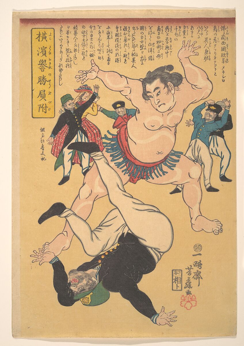 - Title: Yokohama Sumo Wrestler Defeating a Foreigner