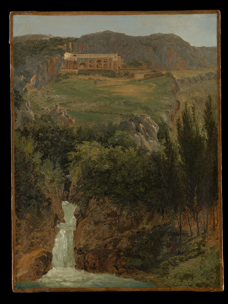 With its glorious setting in the Sabine Hills east of Rome, the medieval monastery of San Benedetto at Subiaco became a popular subject for landscape painters at the turn of the nineteenth century. This plein-air sketch exemplifies Boisselier’s rarefied freshness of vision and scrupulous attention to form and color through virtuoso brushwork. The artist’s choice of a vertical format suggests that his interest lay not only in the view, but in the physical interaction of its elements, with rushing water transformed into vapor as it rises slowly into the clear, warm sky.