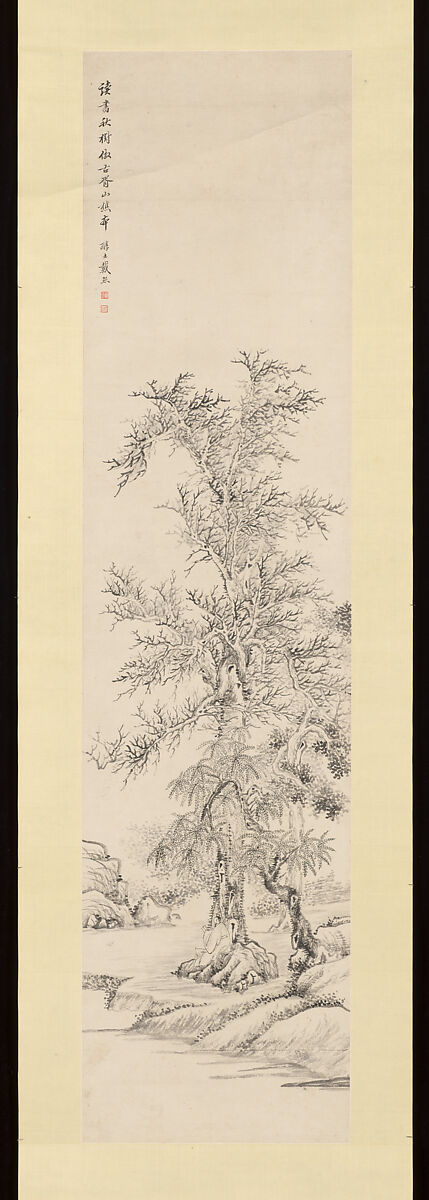 In the nineteenth century, painters like Dai Xi expanded the notion of copying ancient masters to include more recent artists, such as Xiang Shengmo of the seventeenth century. Here, Dai has drastically reduced Xiang’s original painting (British Museum) to a few simple elements: a riverbank with a scholar and three intertwined trees. In this way, Dai focused on capturing the essence of Xiang’s work rather than creating an exact copy.