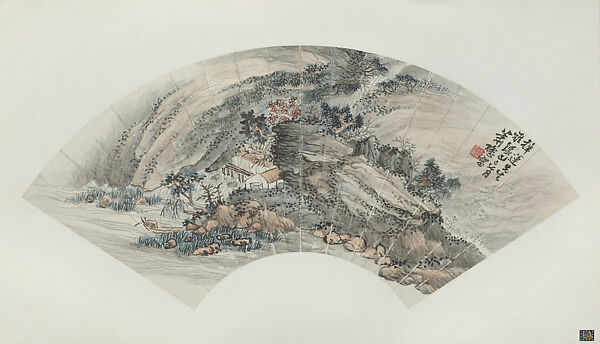 - Medium: Framed folding fan mounted as an album leaf; ink and color on paper