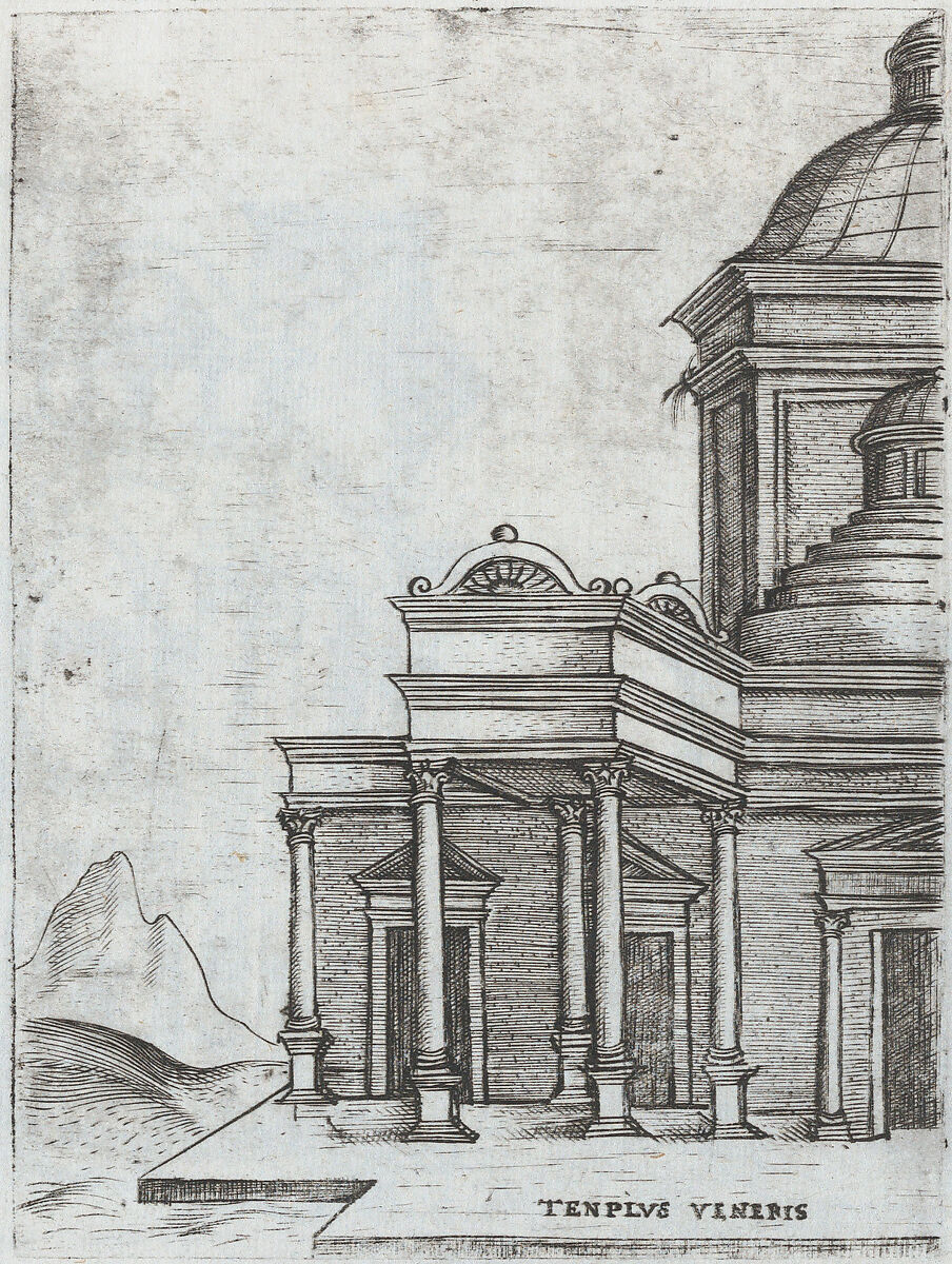 Most copper plates for this series have been engraved on both sides. This print is taken from the same plate as the 'Tenplum Iovis Ultoris'.