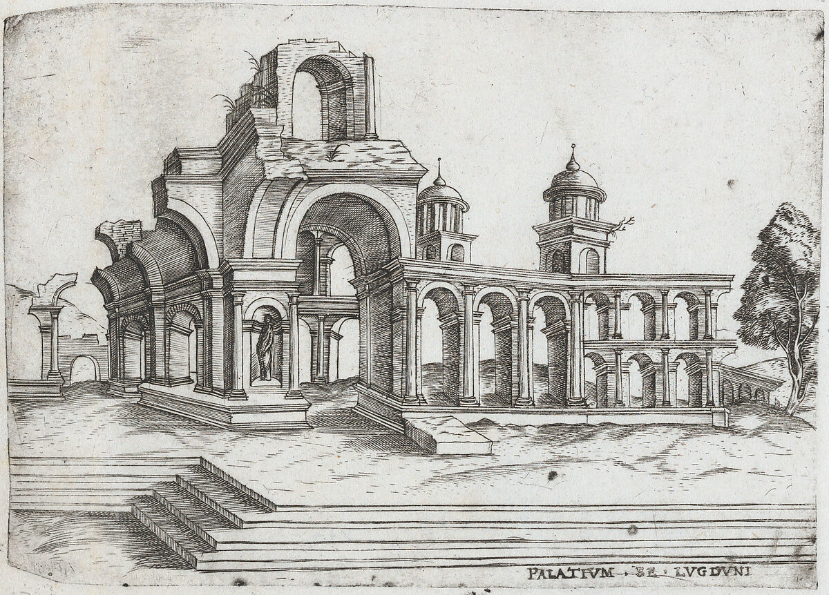The print is part of a group of architectural prints depicting buildings from Roman Antiquity, ranging from triumphal arches to bath houses, temples and palaces in Italy, France and Spain. Some of the buildings have been artificially reconstructed based on Medieval descriptions, while others are depicted in their ruinous states. The plates are known in several (uncatalogued) states, and have undergone minor changes over time. Several titles of buildings have been changed, and the plates have been cropped as a result of plate cracks and oxidation.