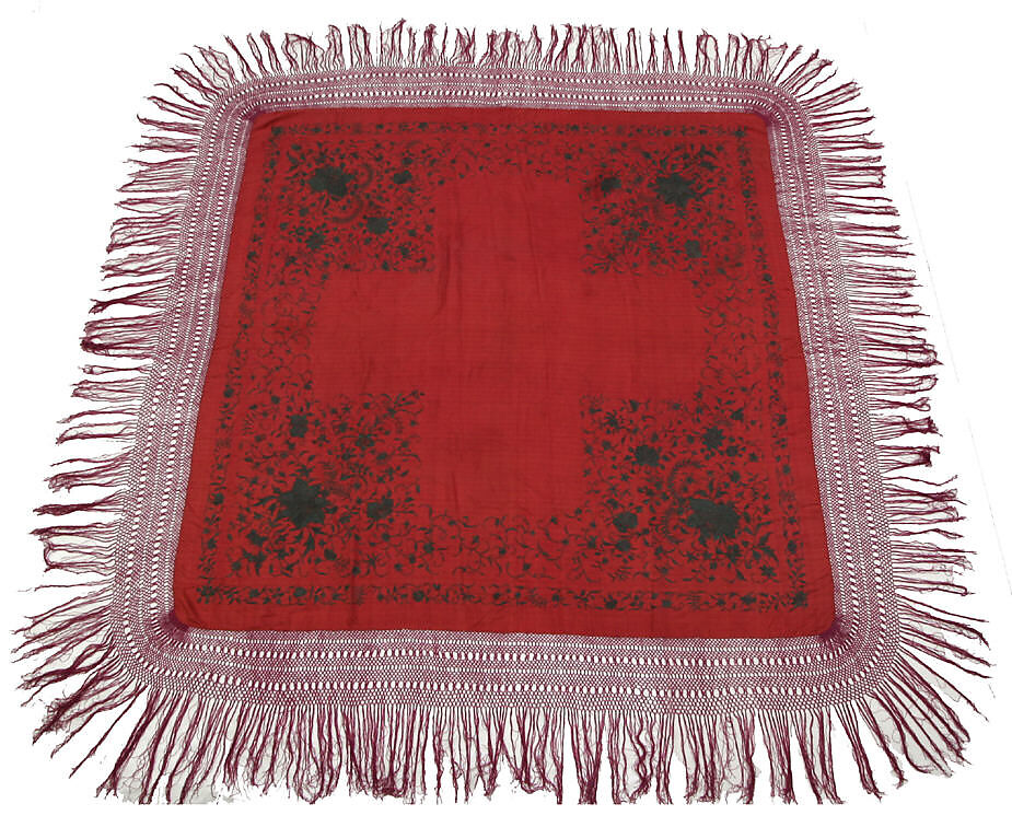 Overall (with fringe): 78 3/4 x 78 3/8 in. (200 x 199 cm) - Classification: Textiles-Embroidered