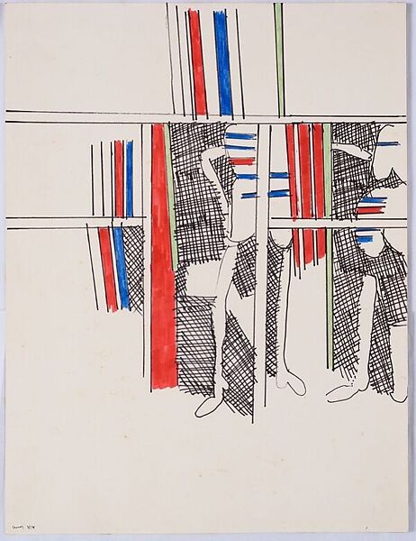 This drawing belongs to a group of five works on paper completed by the Indian artist K.G. Subramanyan after his 1966–67 Rockefeller scholarship in New York. It demonstrates a shift in his practice away from the overwrought culture of oil painting as practiced in Europe at the time, and toward the bold, sometimes naïve and cynical freedom of American artists of the 1960’s. The odd forms in the drawing, resembling figurative elements like arms or legs, unfurl like animated confetti out of an enclosed grid. The tension generated between chaos and a kind of composure produces a wonderful rhythm in the work.