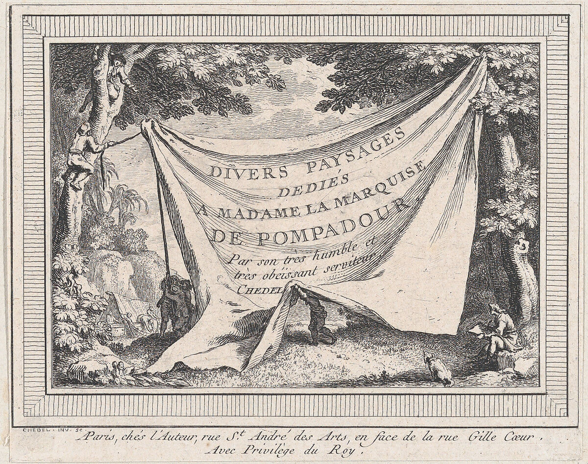 - Title: Title page, from series of six landscapes dedicated to Madame La Marquise de Pompadour