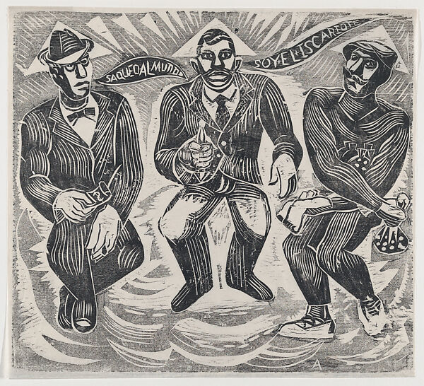 - Title: The Trinity of Scoundrels, a proof impression for a broadside with a satirical ballad associated with the newspaper 'El Machete'