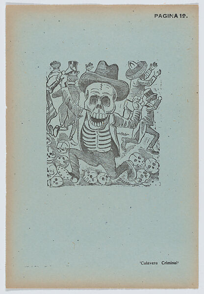 - Title: Page 19: a criminal calavera terrifying people, from '36 Grabados' (Mexico, 1943)