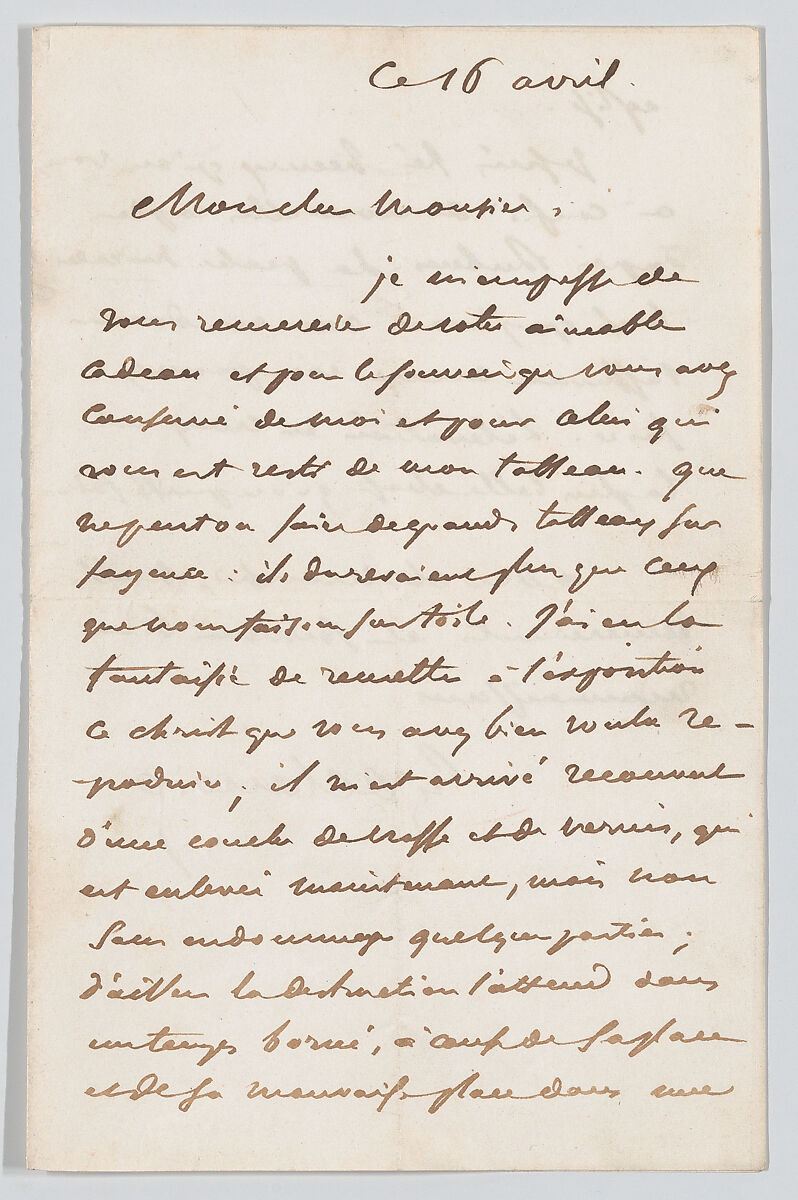 - Title: Letter to Émille-Aubert Lessore, with envelope