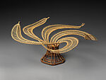 Uematsu Chikuyū is a perfectionist who limits his production to one piece a year. He lives in seclusion, devoting his full attention to his bamboo works, and has experimented with wall sculptures as well as with contemporary reinterpretations of traditional bamboo craft. Autumn Breeze is inspired by a type of sencha tray in the form of a large banana leaf made by famed bamboo craftsmen such as Iizuka Rōkansai and Maeda Chikubōsai I. Uematsu’s large, standing pinwheel shape consists of six meticulously executed leaves seemingly in motion.