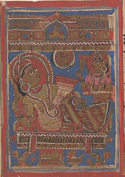 - Title: Trisala on Her Couch (left) / The Goddess Sri, One of the Fourteen Lucky Dreams (right); Page from a Dispersed Kalpa Sutra (Jain Book of Rituals)
