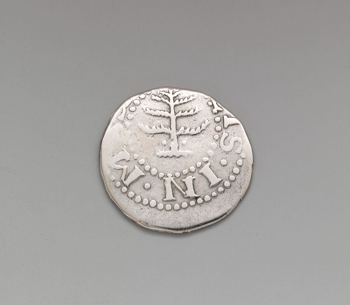 In 1652 John Hull and Robert Sanderson were appointed mint masters for the Massachusetts Bay Colony. Established in response to a chronic shortage of hard currency and the need for a reliable and efficient medium of exchange, the mint was operated by Hull and Sanderson for thirty years. During that period, it produced coins of various denominations and designs, ranging from a simple NE (for "New England") to a willow, oak, or pine tree encircled by beading; virtually all examples, however, were dated 1652.