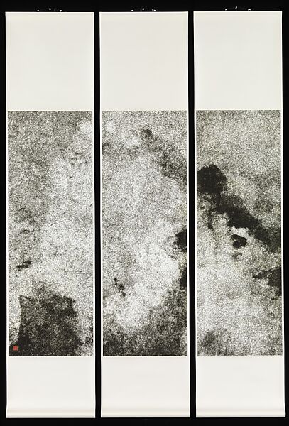 - Medium: Set of three photographic hanging scrolls; ink on paper