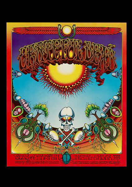 This work of art is currently on loan to the museum.A classic Grateful Dead design by poster artist Rick Griffin, this image also appeared as the cover art for the album Aoxomoxoa (1969).
