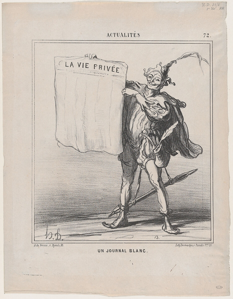 - Title: A blank newspaper, from 'News of the day,' published in Le Charivari, March 31, 1868