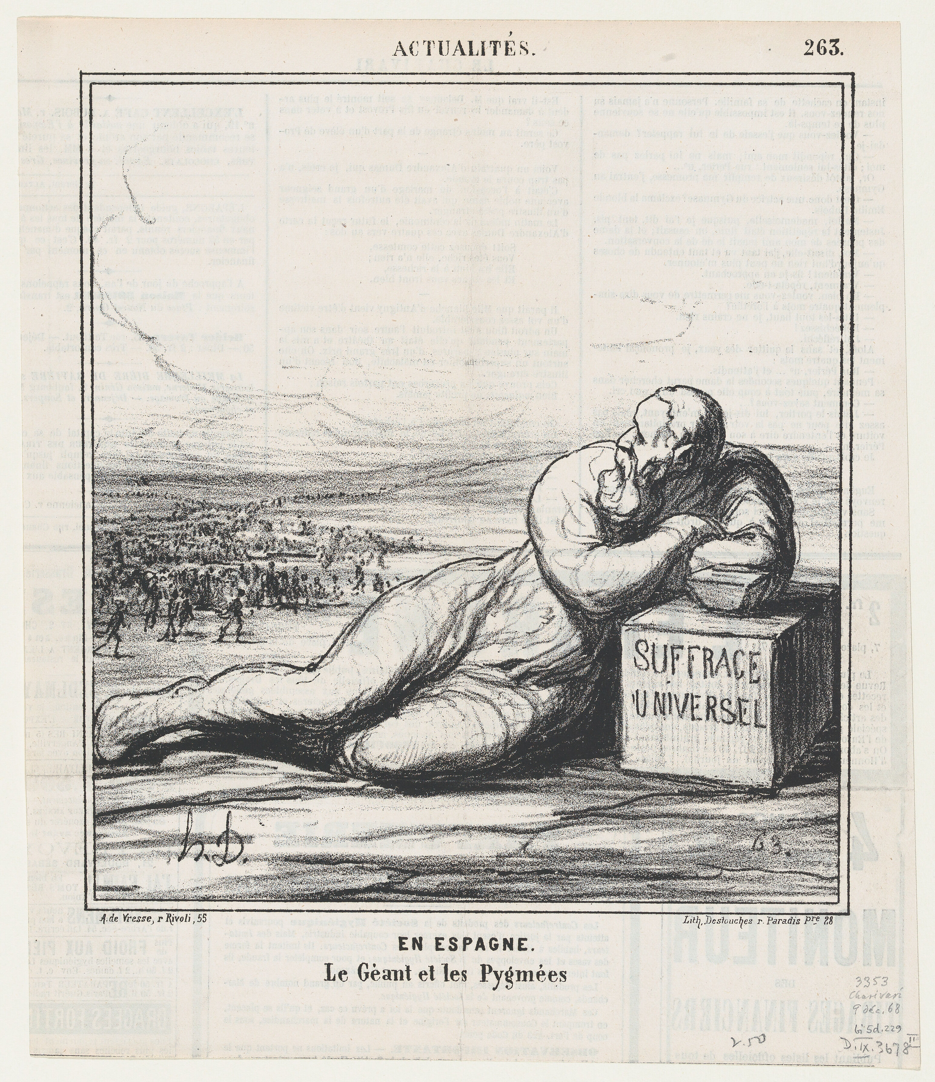 - Title: In Spain: the giant and the pygmies, from 'News of the day,' published in Le Charivari, December 9, 1868