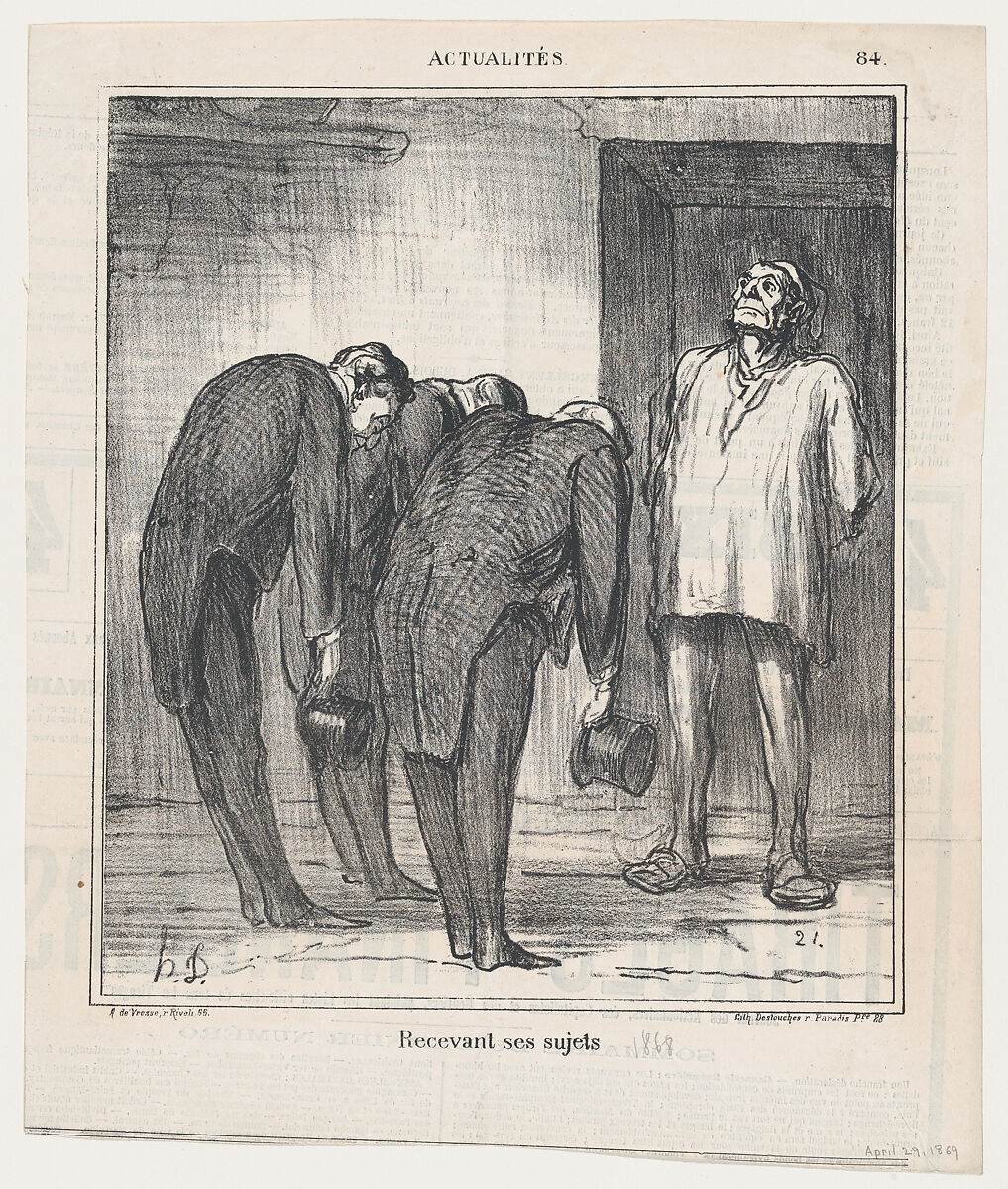 Receiving his subjects, from 'News of the day,' published in Le Charivari, April 29, 1869