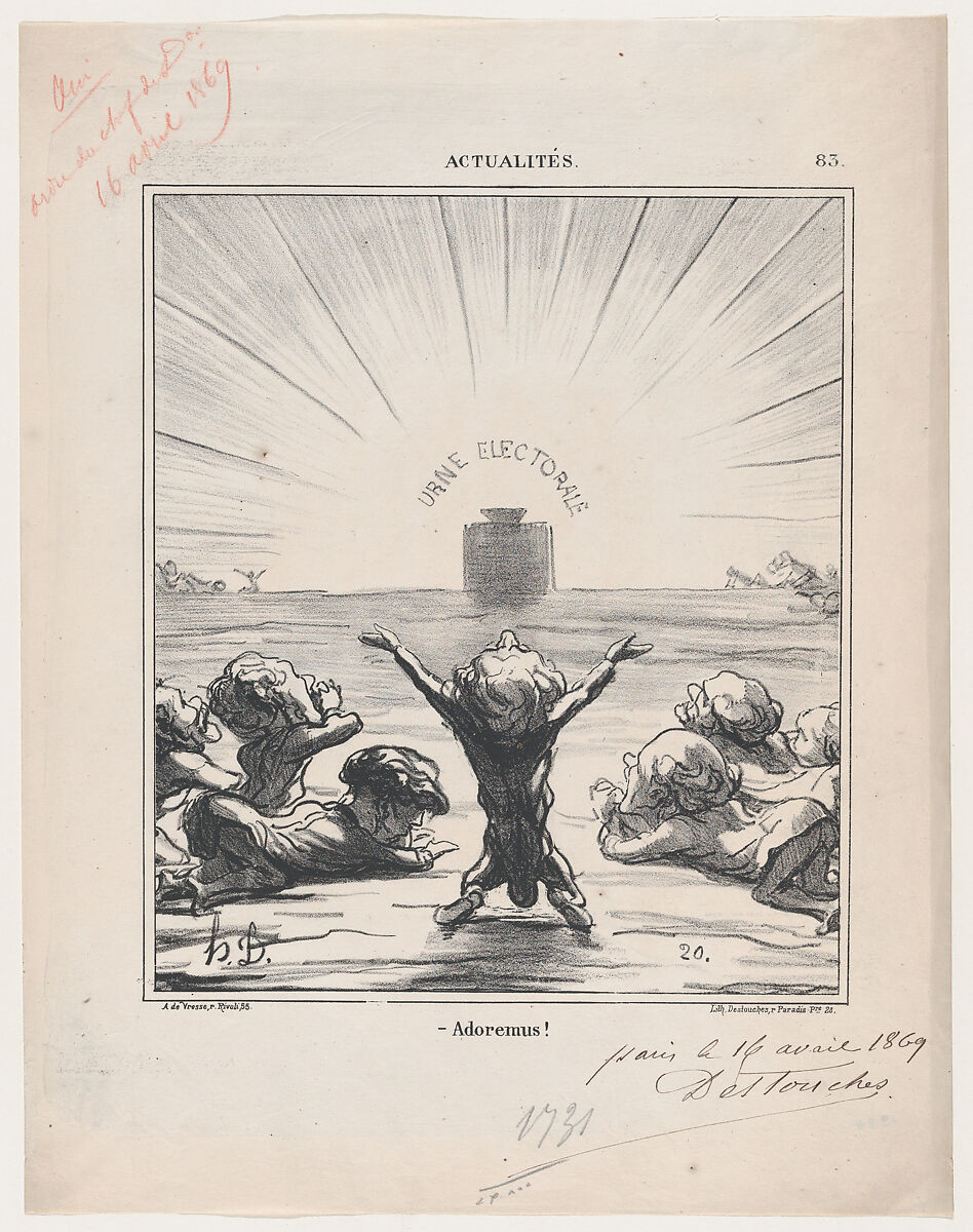 - Title: We worship you, beloved voter, from 'News of the day,' published in Le Charivari, May 5, 1869