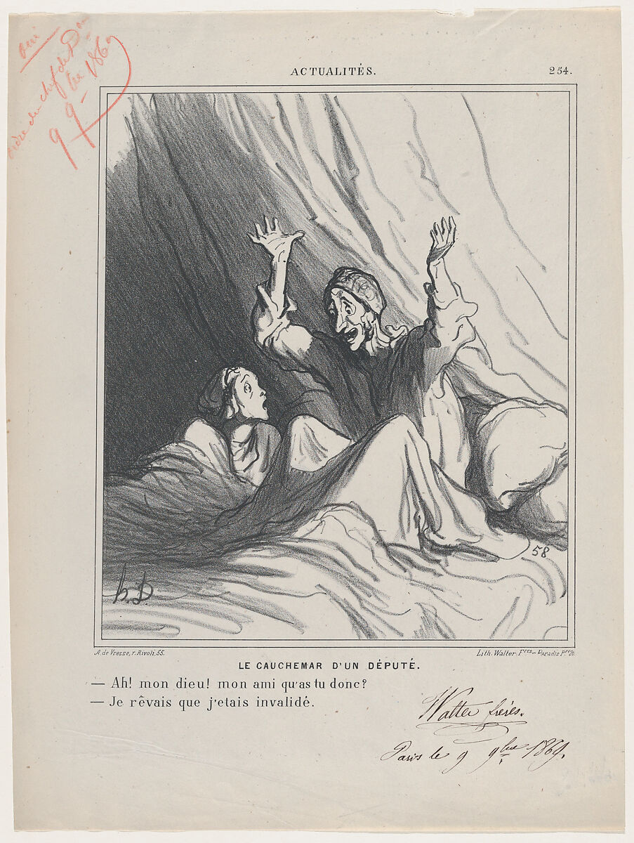 - Title: A deputy's nightmare: –Oh my friend, what has happened? –I dreamed I was invalidated, from 'News of the day,' published in Le Charivari, December 7, 1869