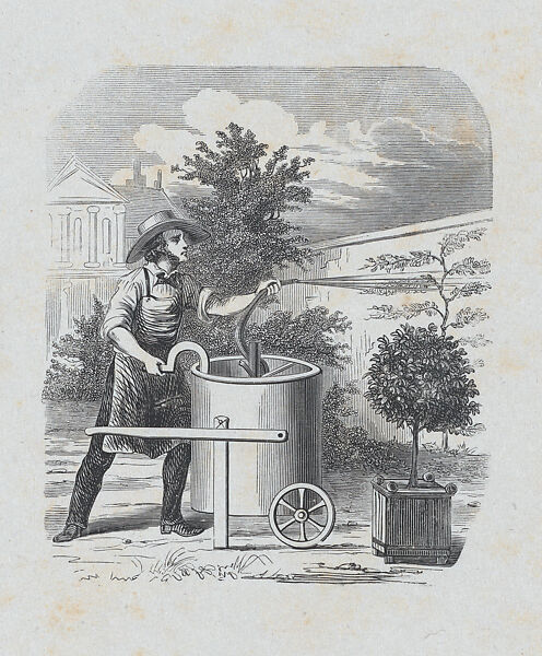 - Title: Gardener watering his plants
